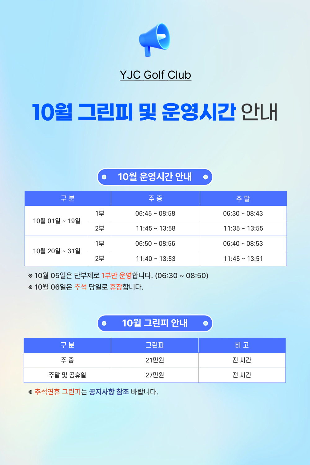 제목10월 그린피 및 운영시간 안내 2025-09-10
